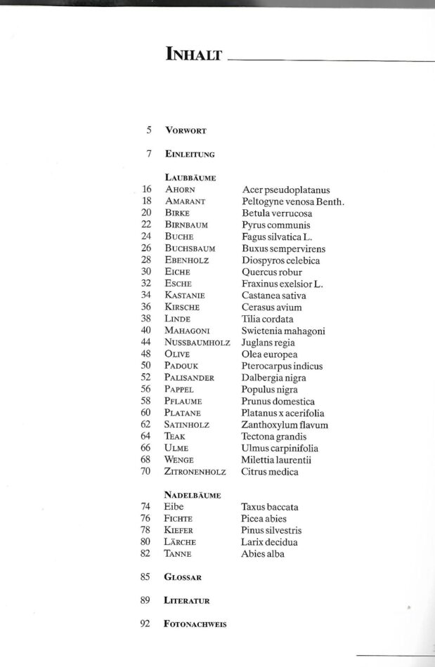 - detaillierte Beschreibungen der verwendeten Holzarten