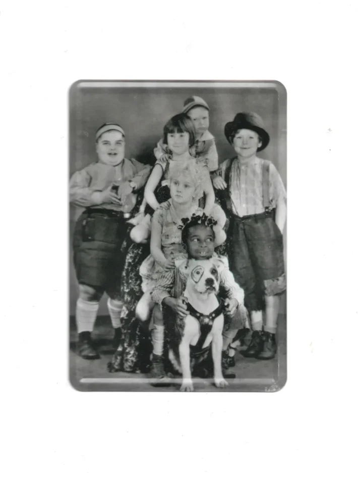 Nostalgische Blechpostkarte – Die kleinen Strolche Diese charmante Blechpostkarte zeigt die Stars aus der Kultserie Die kleinen Strolche (Our Gang).