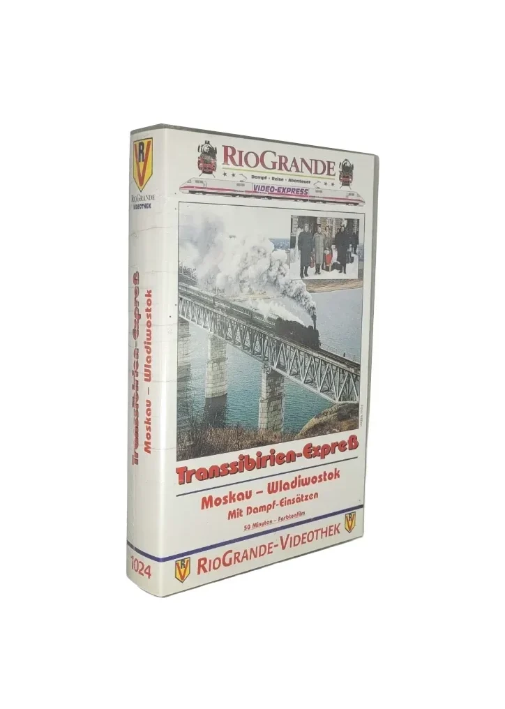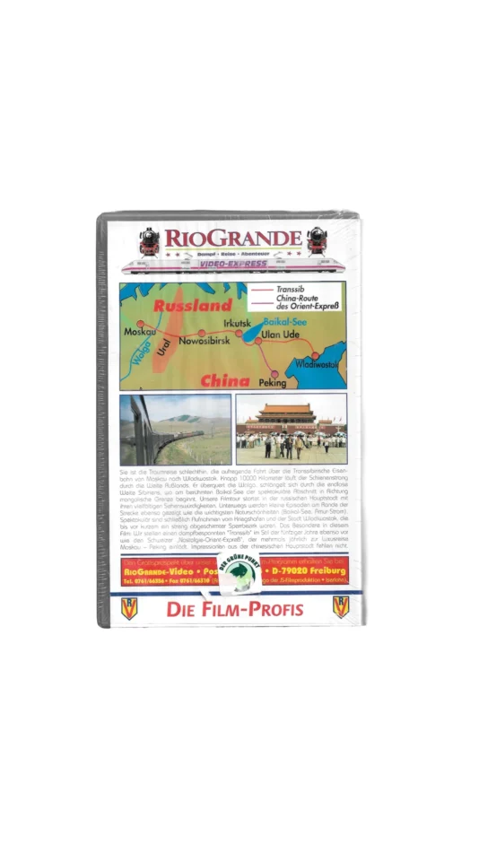 „Transsibirien-Expreß – Moskau–Wladiwostok mit Dampf-Einsätzen“ ist eine eindrucksvolle VHS-Dokumentation aus der Reihe RioGrande Video-Express, die die legendäre Fahrt auf der Transsibirischen Eisenbahn zeigt – begleitet von historischen Dampflokeinsätzen.