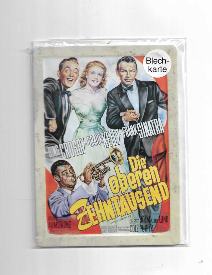 Filmstars Blechpostkarte Bing Crosby, Grace Kelly, Frank Sinatra, Louis Armstrong „Die oberen Zehntausend“