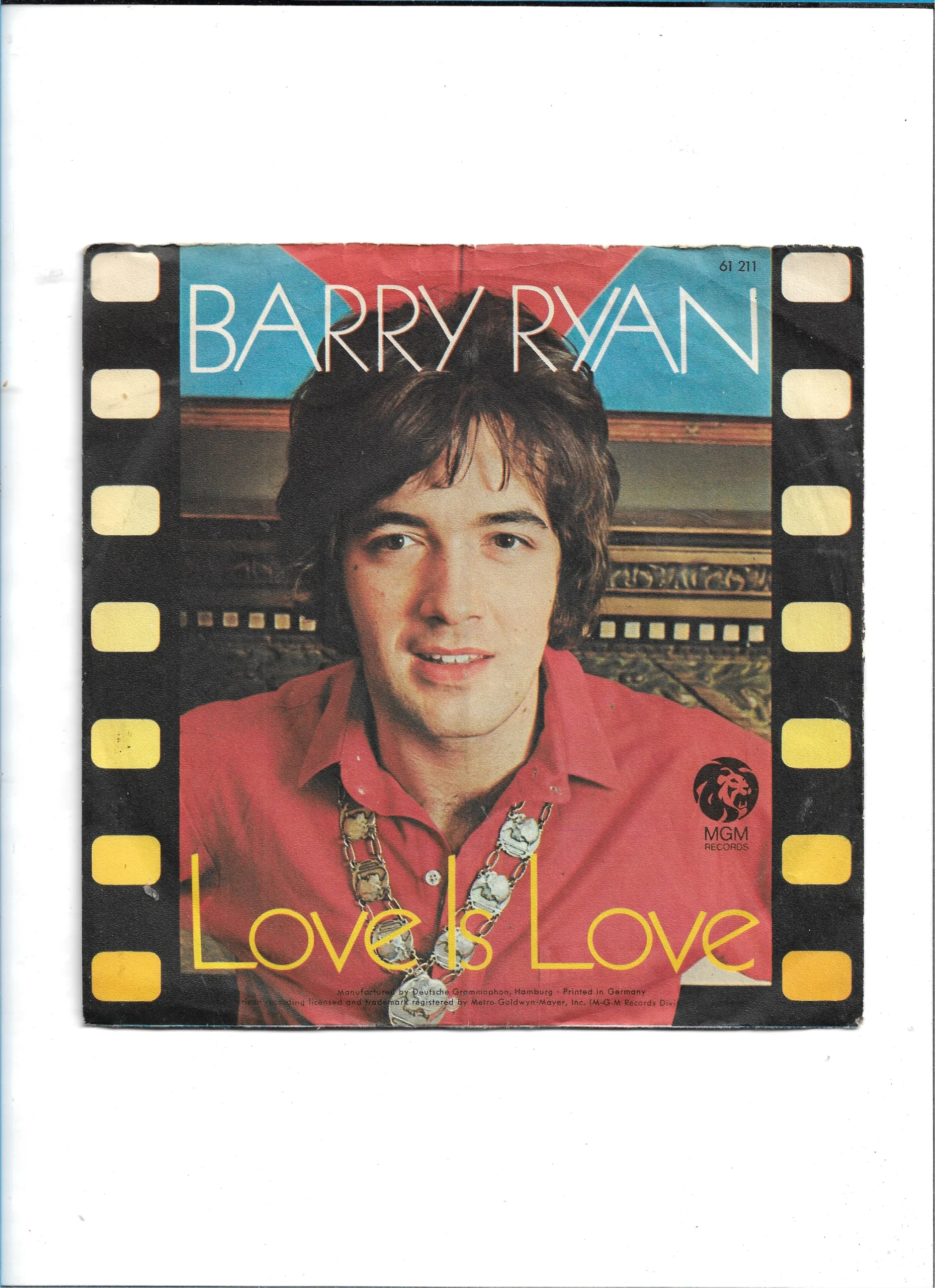 Barry Ryan: „Love Is Love“ (MGM 61 211, ca. 1969) Diese 7″-Vinyl-Single enthält den gefühlvollen Popsong „Love Is Love“ des britischen Sängers Barry Ryan, bekannt für seinen dramatischen Gesangsstil und Hits wie „Eloise“. Die Veröffentlichung stammt vom Label MGM Records, Katalognummer 61 211, und wurde in Deutschland über Deutsche Grammophon vertrieben.