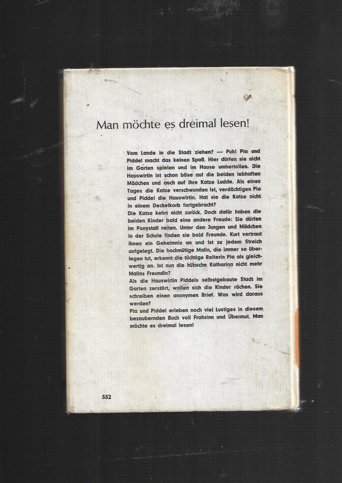 Pia und Piddel – zwei Mädchen mit sprühenden Ideen, Mut im Herzen und einer gehörigen Portion Fantasie. Dieses Jugendbuch aus dem Engelbert Verlag (1965) entführt zurück in eine Zeit, in der Abenteuer noch im Kopf entstanden, Freundschaft das größte Versprechen war und jeder Tag ein kleines Wunder bereithielt.