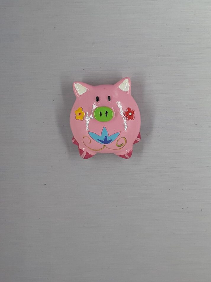 Magnet Glücksschweinchen rosa (4cm x 3,2cm), aus Polyresin, 20 gr., aufgeklebter Magnet (1,5cm x 2,5cm)
