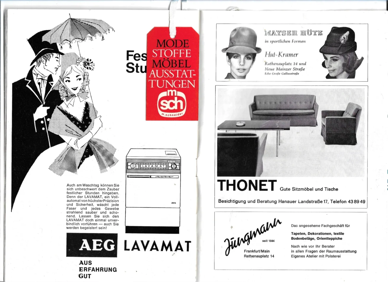 - Original-Werbeanzeigen aus den 1960er Jahren: Mode, Möbel, Teppiche, Hutgeschäfte, Haushaltsgeräte u.v.m.