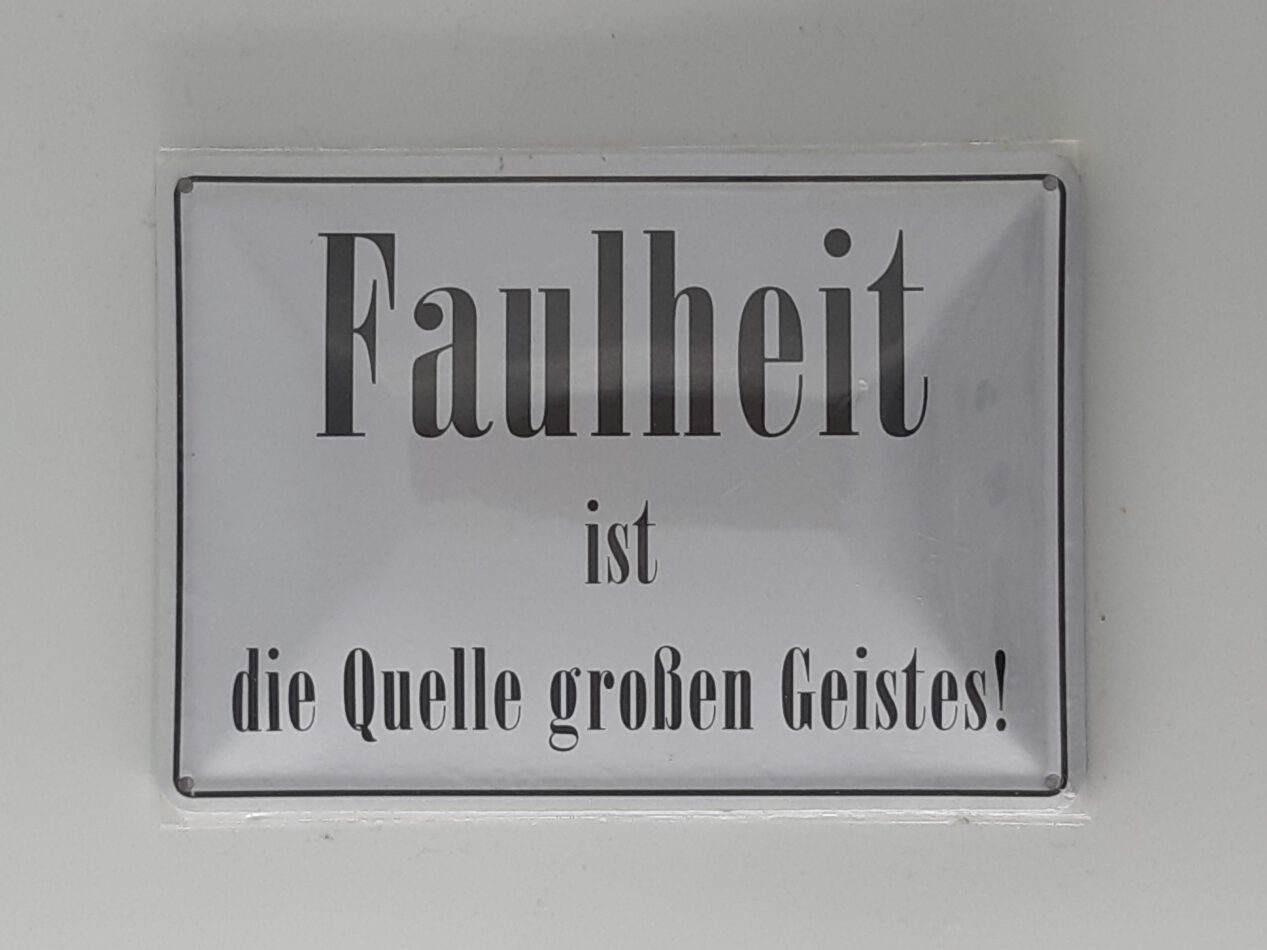 Spruchschild „FAULHEIT ist die Quelle großen Geistes !“ (10 x 15 cm)